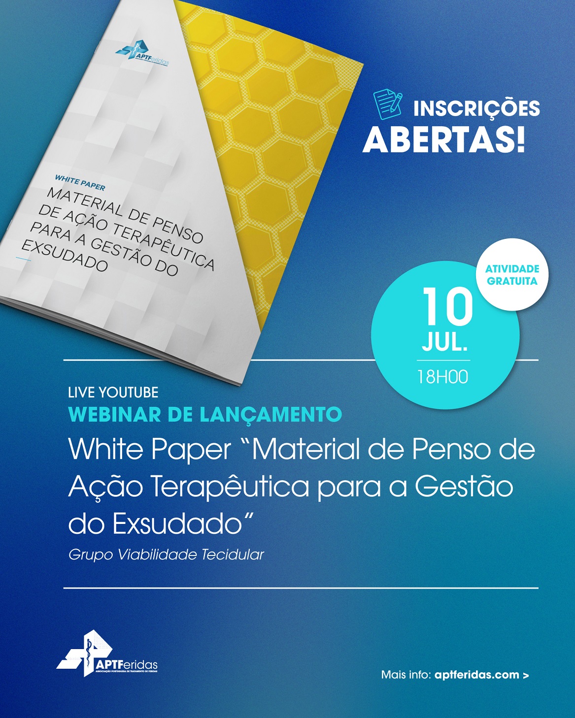 Estão abertas as inscrições para a primeira Atividade do ano: o Webinar de Lançamento do White Paper "Material de Penso de Ação Terapêutica para a Gestão do Tecido Não Viável", que será o primeiro de cinco documentos dedicados ao tema "Material de Penso de Ação Terapêutica", e se realizará no dia 30 de Janeiro de 2025, pelas 18h00, em direto no nosso Canal de Youtube.