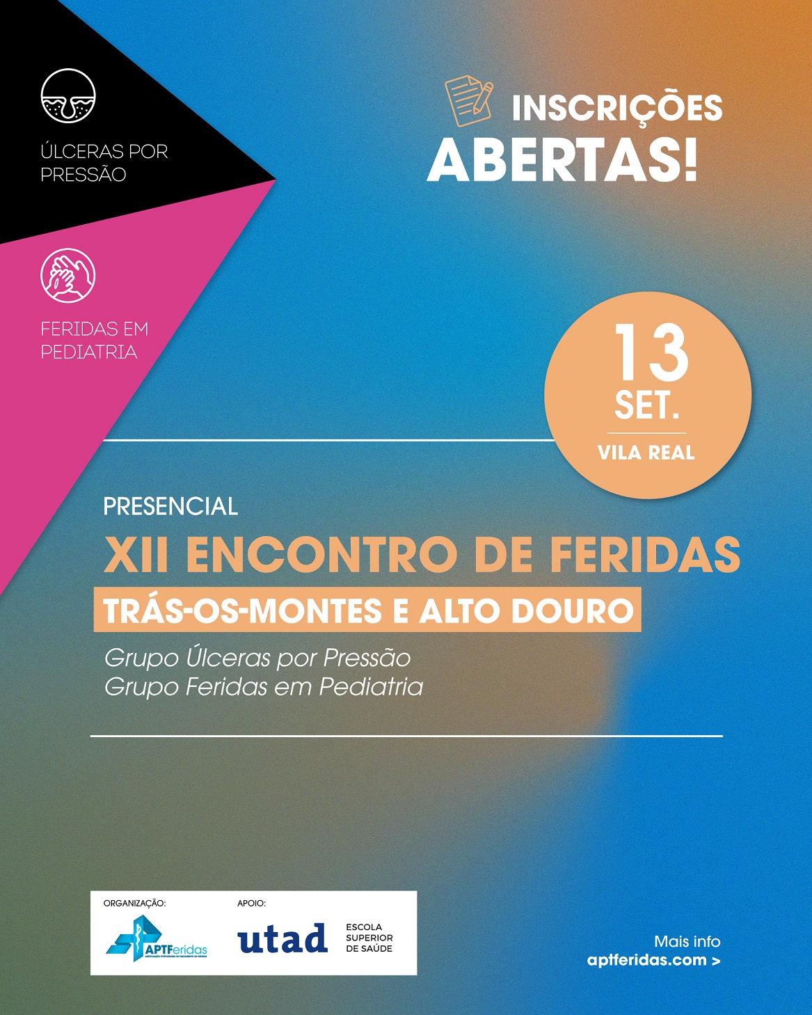 Estão oficialmente abertas as inscrições para o XII Encontro de Feridas de Trás-os-Montes e Alto Douro: Úlceras por Pressão & Pediatria, que se realizará no dia 13 de Setembro de 2025, em Vila Real.