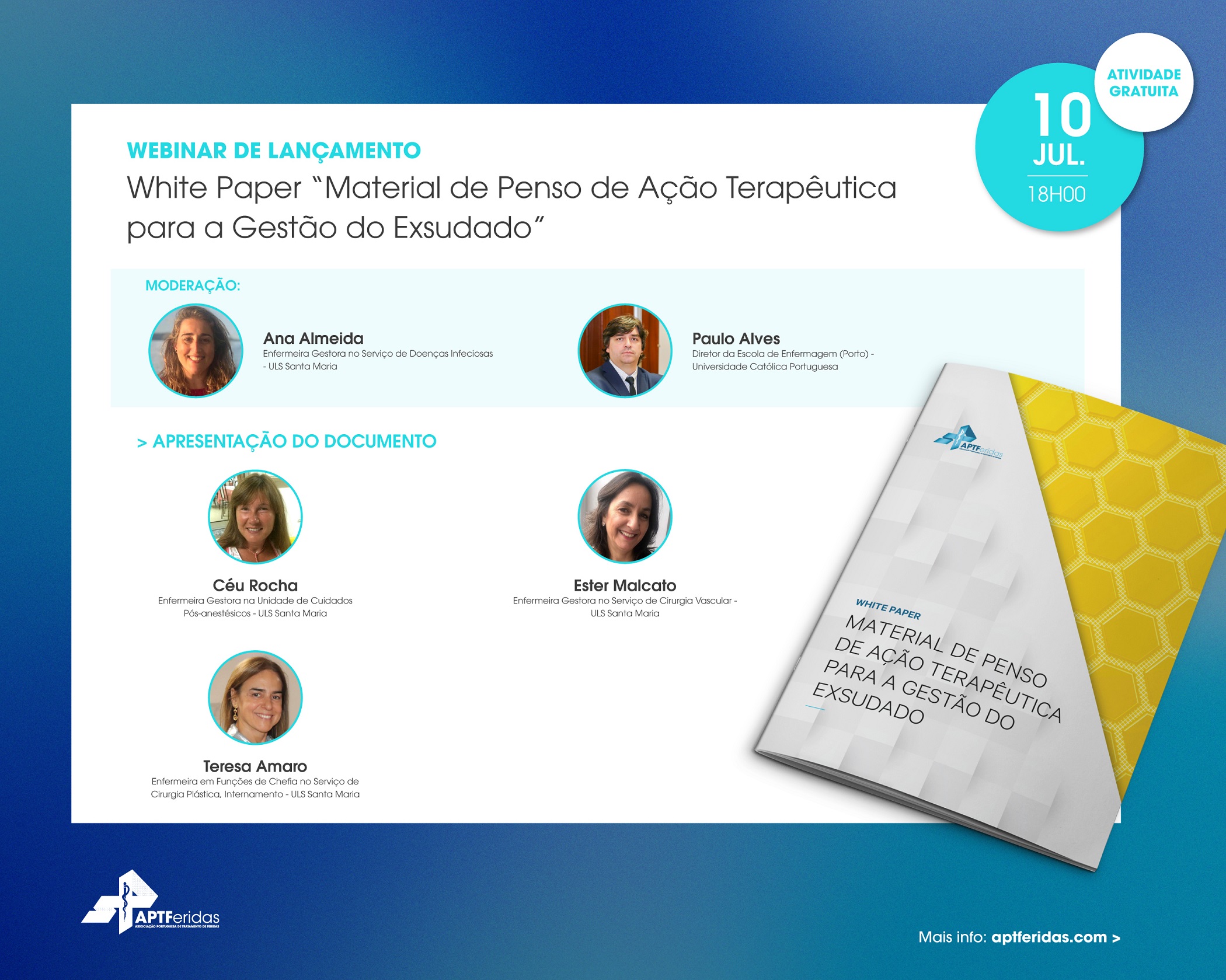 Estão oficialmente abertas as inscrições para o Webinar de Lançamento do WhitePaper "Material de Penso de Ação Terapêutica para a Gestão do Exsudado":