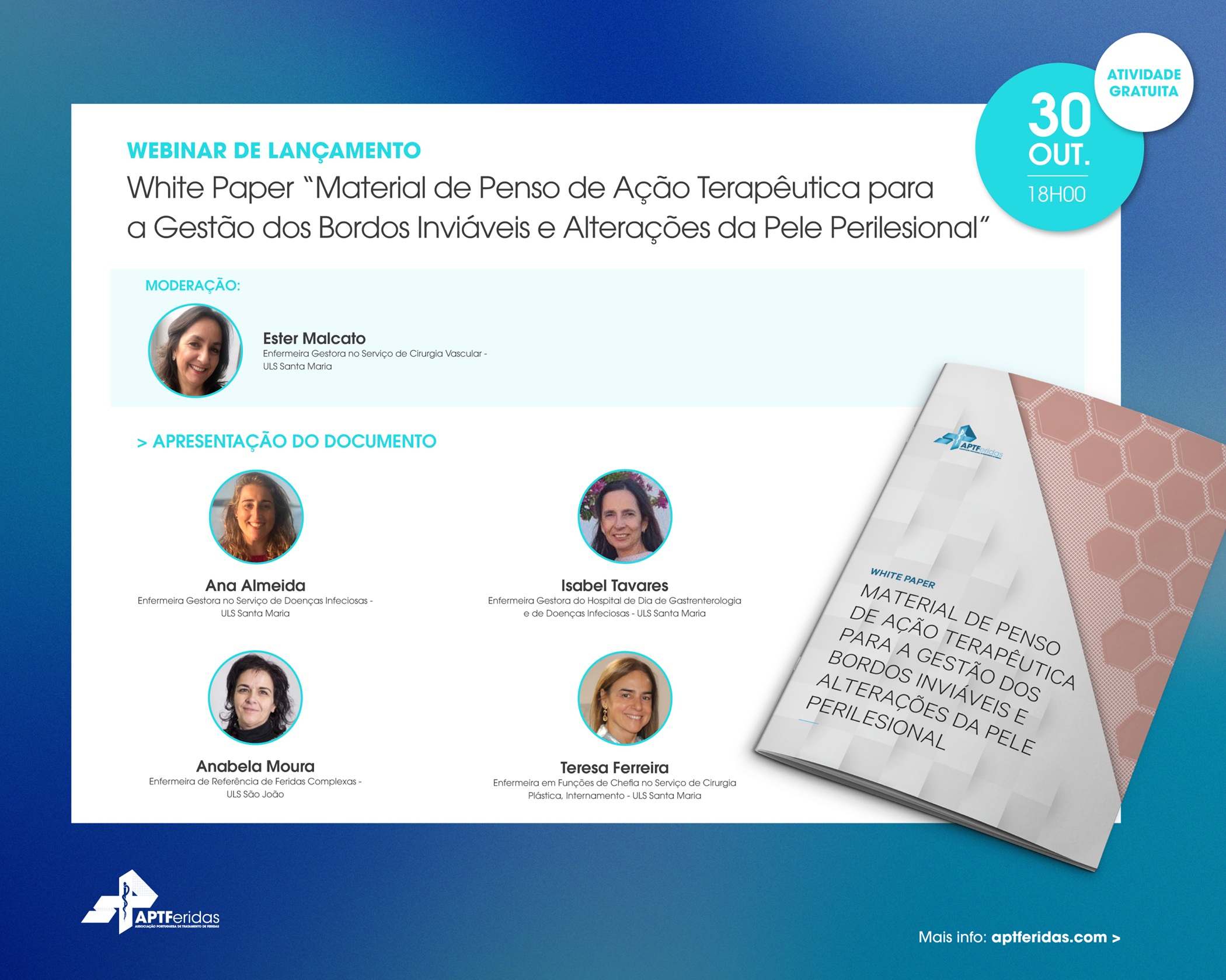 Não falte à apresentação oficial deste White Paper, que versará sobre os MTAP para a Gestão dos Bordos Inviáveis e Alterações da Pele Perilesional.