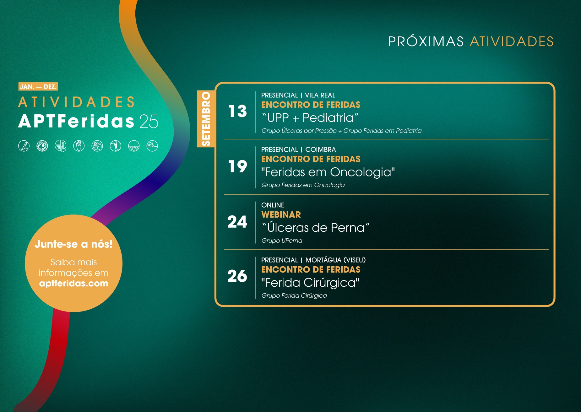 Em 2025 a APTFeridas volta a reforçar o seu compromisso com a Formação de Excelência e a Produção/Disseminação da melhor e mais robusta Evidência Científica nas áreas da Investigação, Prevenção e Tratamento de Feridas.