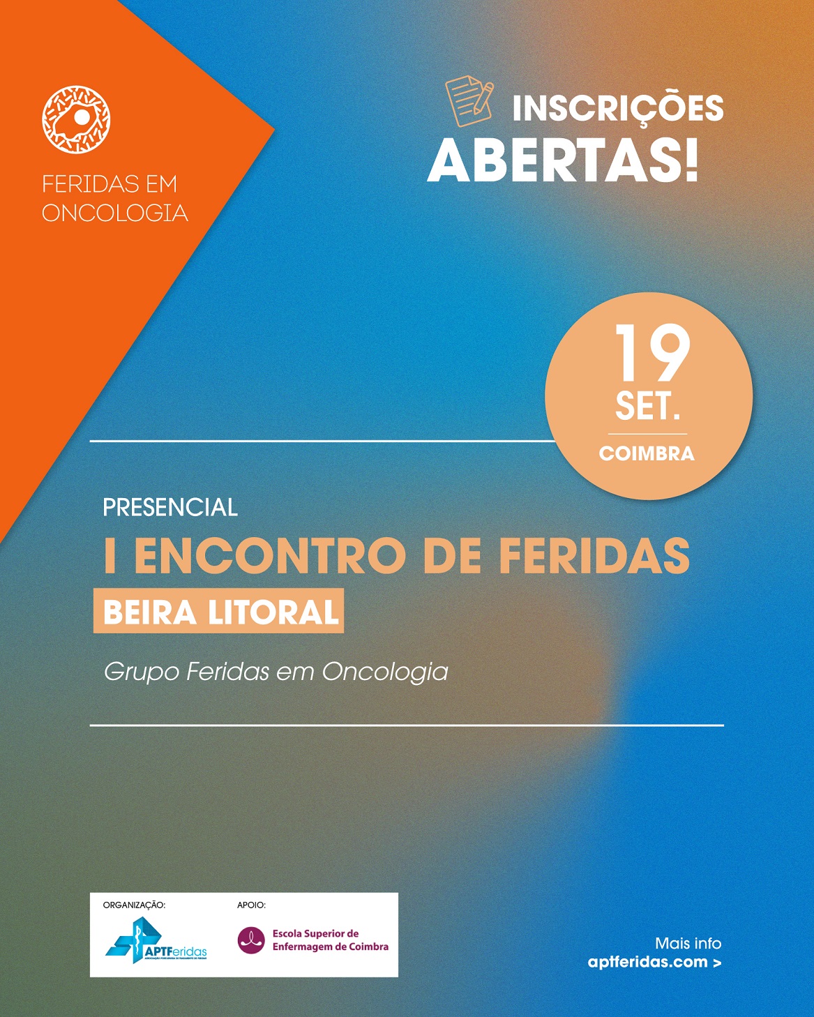 Estão oficialmente abertas as inscrições para o I Encontro de Feridas da Beira Litoral: "Cuidar da Pessoa com Ferida em Oncologia", que se realizará no dia 19 de Setembro de 2025, em Coimbra.