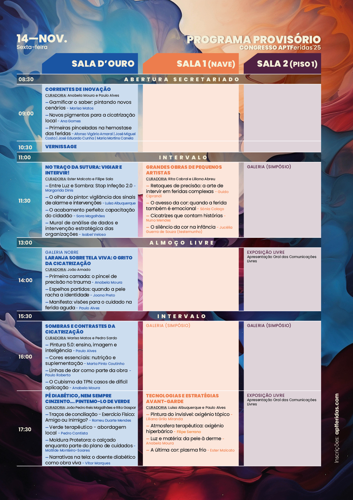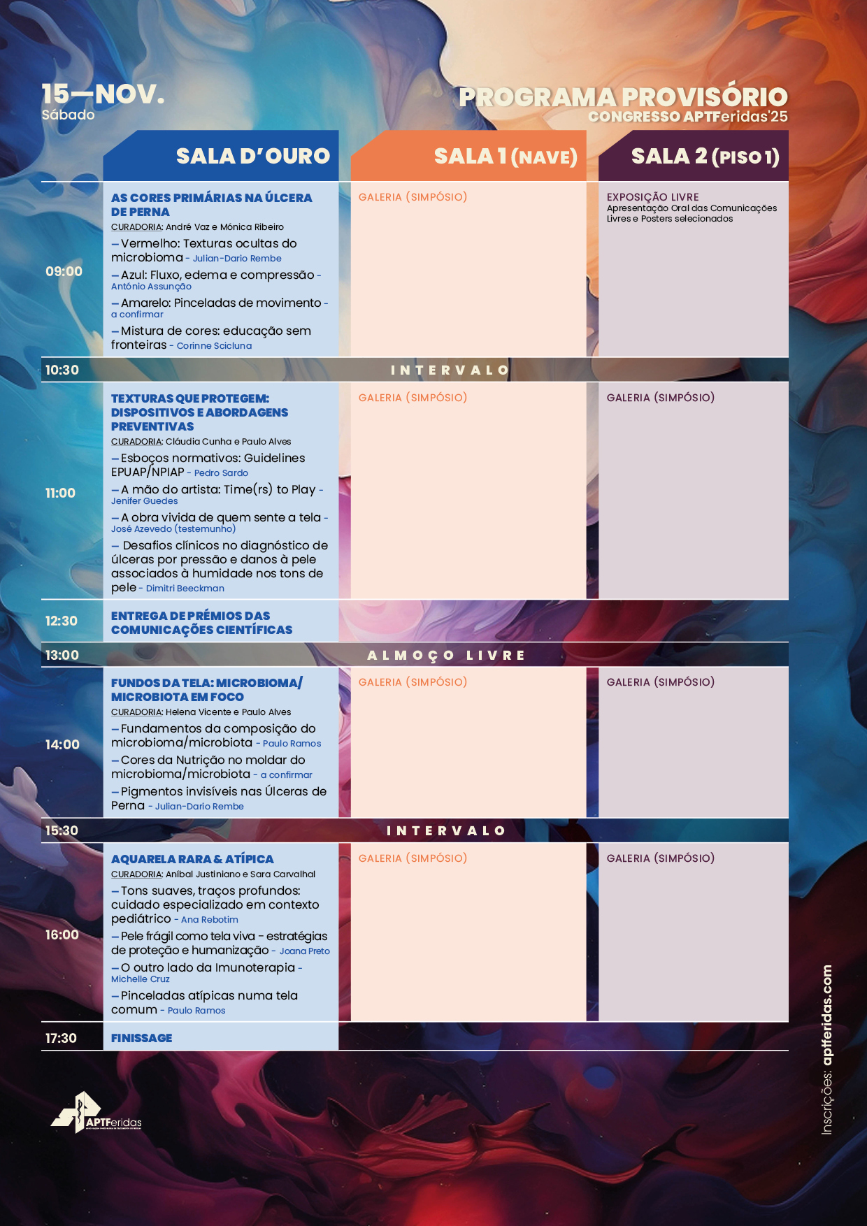 Nos dias 14 e 15 de novembro 2025, no Congresso APTFeridas'25 - "A Arte de (Re)Tratar: do esboço à obra-prima", poderá::